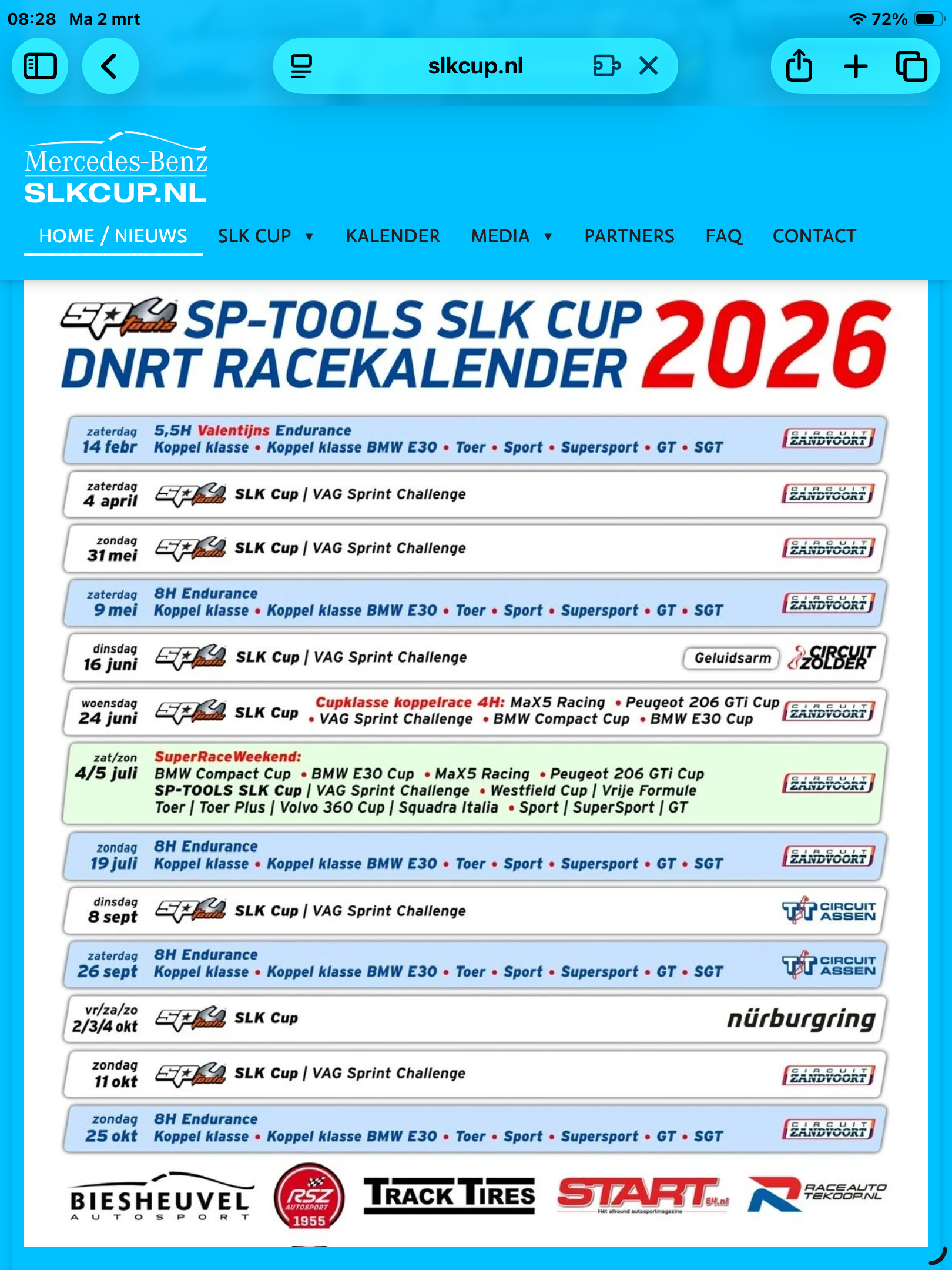 Ik sta ingeschreven bij de Mercedes SLK Cup georganiseerd door Biesheuvel motorsport en rij vijf van de acht races in dit kampioenschap.